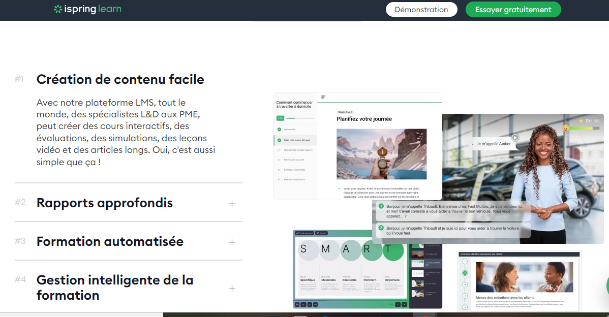 Voici les fonctionnalités et avantages clés de Ispring Learn :
